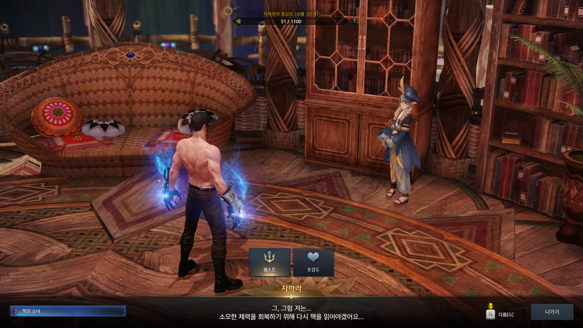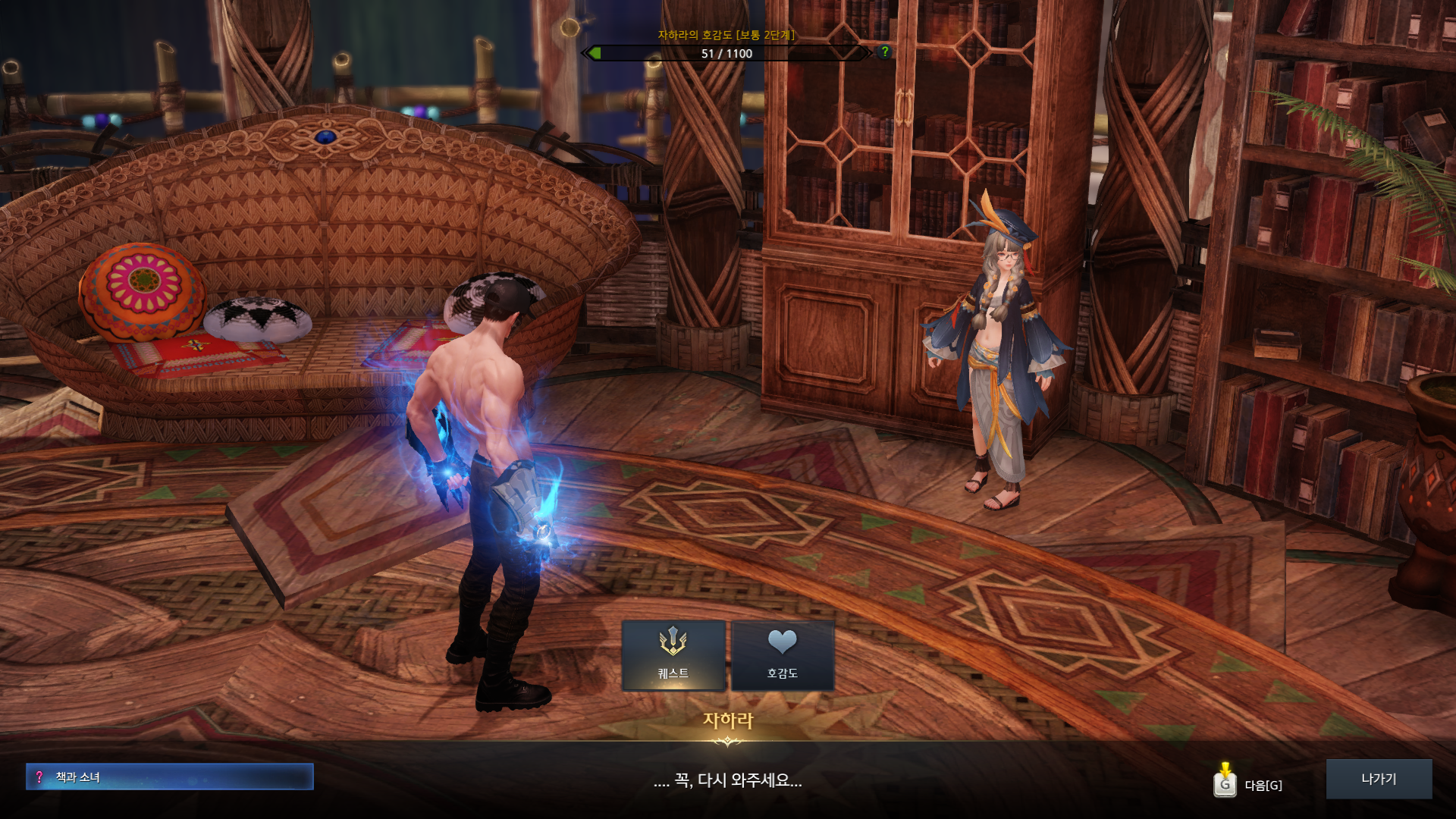호감도 퀘스트 첫 장은 마무리됩니다.